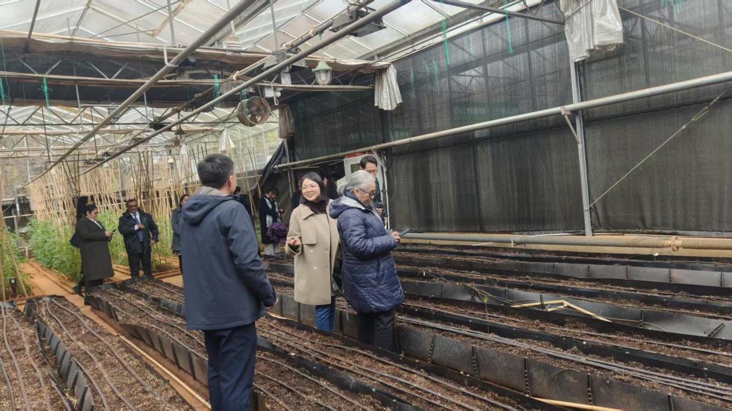 学院玻璃温室实验大棚,傅红书记与杨院长共同引导嘉宾深入了解科研成果。针对机制栽培黄精项目,重点介绍了学院自主研发的规范化种植流程,包括种苗培育、病虫害绿色防控等核心技术,有效保留药用成分。在生物炭改良土壤种植番茄的实验区,嘉宾们仔细观察番茄生长状态,详细询问生物炭的制备工艺与土壤改良机理,对该技术在盐碱地治理、化肥减量等方面的应用前景表示浓厚兴趣。此外,农业智能水肥一体化系统的自动化控制、精准灌溉施肥等,让代表团直观感受到现代农业技术的高效与便捷,现场交流氛围热烈。贝塔塔校长表示,昆明理工大学现代农业工程学院的技术创新成果极具实践价值,尤其在特色作物栽培和生态农业技术方面的探索,与尼加拉瓜农业发展需求高度契合,期待未来能开展技术引进与联合科研。杨启良院长回应称,学院愿以此次访问为契机,搭建常态化交流平台,在人才培养、科研合作、技术推广等方面深化合作,共同助力中尼农业高质量发展。