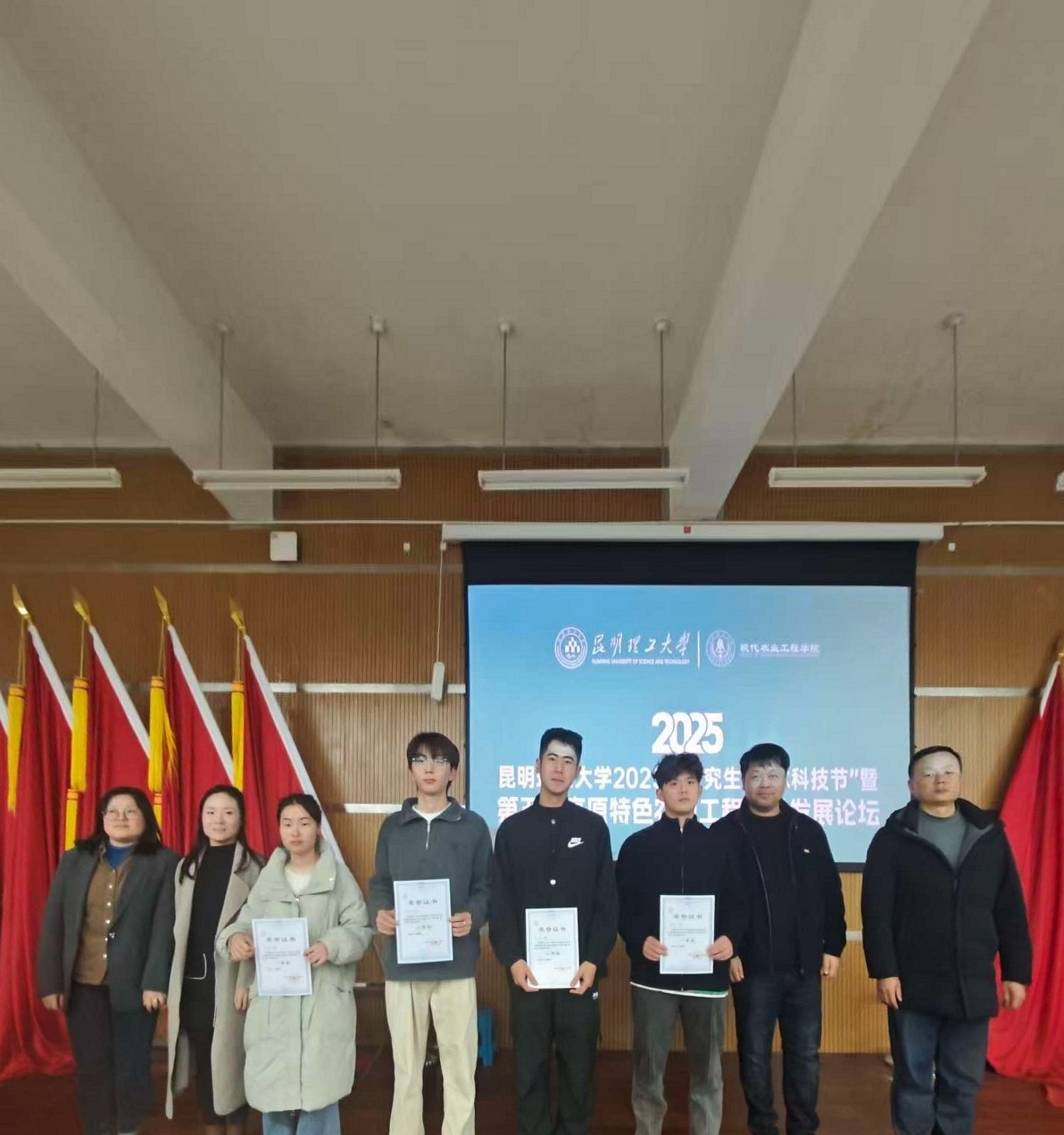 为进一步推动高原特色农业工程技术创新与交流,提升研究生科研素养与学术表达能力,2025年12月5日,昆明理工大学现代农业工程学院在500会议室成功举办“第五届高原特色农业工程技术发展论坛”。学院党委副书记陈瑜鸿出席论坛并致辞,学院优秀青年教师董建华、曹春号受邀作专题汇报。近200人次参与到本次学术交流活动中来。论坛以“聚焦高原特色、驱动工程技术创新”为主题,设置了墙报展示与PPT学术汇报两大板块。现场共展出29份高质量墙报,并进行25份PPT汇报,内容涵盖高原作物智能栽培、农业装备优化设计、农产品加工与安全检测等多个研究方向,充分展现了我院学子扎实的科研功底与创新意识。
