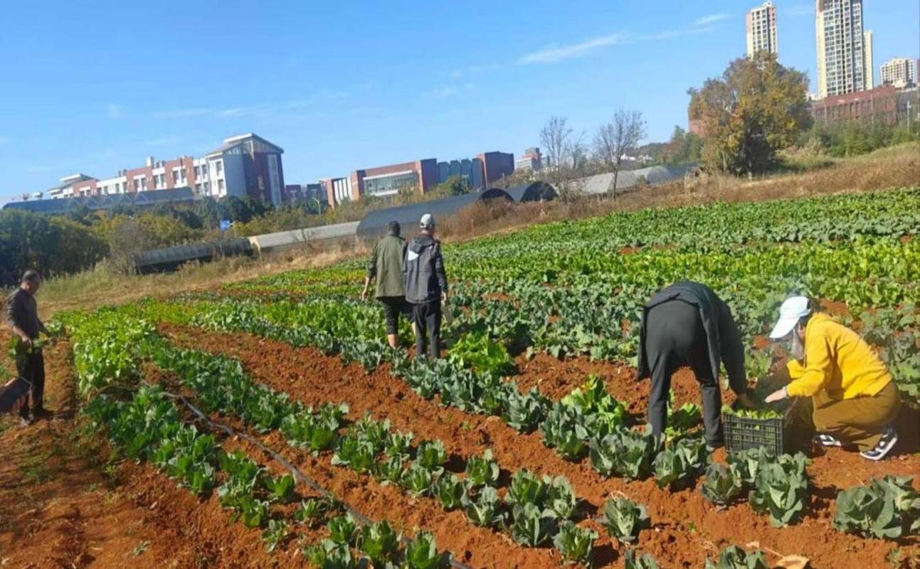 经过两个月的浇灌、除草和施肥,部分蔬菜到了成熟期,经过和后勤保障服务中心联系,由食堂的同志来地头采收,将这些蔬菜经过加工,免费提供给全校学生。