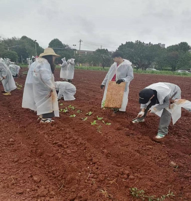 秋雨绵绵,红土新垦。活动伊始,现代农业工程学院研究生党支部的党员和技术骨干们充分发挥专业优势,化身“田间技术指导员”,为国际学院的师生党员和入党积极分子们详细讲解了蔬菜苗的种植技巧、间距要求、铺膜要领及后续养护知识。他们专业的讲解和娴熟的示范,不仅传递了农业知识,更展现了学生党员服务群众、带头实践的风采,迅速打消了国际学院师生们初次下田的紧张与生疏。
